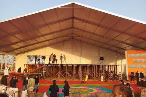 जींद शहर के बाहर एक गाँव में मंच सजाया गया है.