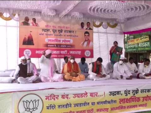 मुंबई: महाराष्ट्र में बीजेपी ने कोरोना काल में मंदिर खोले जाने को लेकर आंदोलन शुरू कर दिया है. कोरोना काल में मंदिरों को बंद किया गया है, जिसे आजतक नहीं खोला गया. बीजेपी का कहना है कि जब महाराष्ट्र में रेस्टोरेंट खुल गये, बार खुल गये, बीच खोल दिये गये फिर मंदिरों को क्यों बंद रखा गया है? महाराष्ट्र के राज्यापाल ने इसे लेकर मुख्यमंत्री को चिट्ठी भी लिखी है.