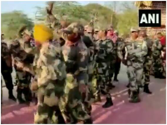 सोशल मीडिया पर वायरल हो रहा यह वीडियो जैसलमेर का है. इसमें बीएसएफ के कई जवान नजर आ रहे हैं. ये सभी आपस में एक दूसरे के साथ होली खेलते दिख रहे हैं. एक-दूसरे को रंग और गुलाल लगा रहे हैं. इनके चेहरे पर इस त्योहार का रंग साफ देखा जा सकता है. घर से दूर होने का तनाव इनके चेहरे पर कहीं नहीं दिख रहा है.