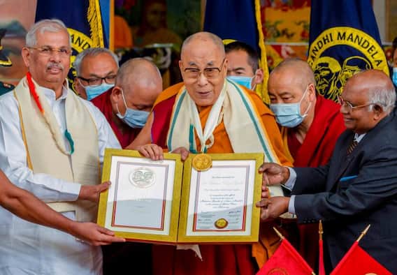 Dalai Lama Awarded First Gandhi Mandela Peace Prize: तिब्बतियों के सर्वोच्च धर्मगुरु (Highest Spiritual Leader of Tibet) 14वें दलाई लामा (Dalai Lama) तेनजिन ग्यात्सो (Tenzin Gyatso) को शनिवार (19 नवंबर) को गांधी-मंडेला फाउंडेशन का शांति पुरस्कार (Gandhi Mandela Foundation Peace Prize) दिया गया. गांधी-मंडेला फाउंडेशन (Gandhi Mandela Foundation) की ओर से दिया गया यह पहला शांति पुरस्कार (Peace Prize) है.