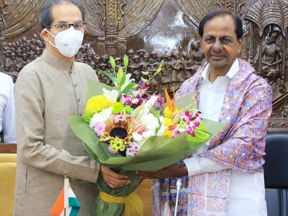 तेलंगाना के मुख्यमंत्री के चंद्रशेखर राव ने रविवार को महाराष्ट्र के मुख्यमंत्री उद्धव ठाकरे से मुलाकात की. तेलंगाना के सीएम एनसीपी सुप्रीमो शरद पवार से भी मिले. राजनीतिक गलियारों में इस मुलाकात के कई मायने निकाले जा रहे हैं. बैठक के बाद केसीआर और ठाकरे ने साझा प्रेस कॉन्फ्रेंस भी की.