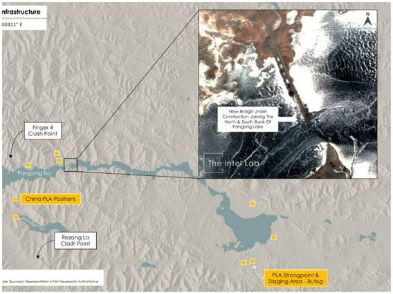 ये पुल चीन अपने ही सीमा-क्षेत्र में तैयार कर रहा है. इंटेल लैब ने पुल की सेटेलाइट तस्वीर भी जारी की है. 2019 में पैंगोंग त्सो झील के उत्तर और दक्षिण दोनों में भारत और चीन की सेनाओं में विवाद हुआ था. हालांकि बाद में दोनों ही जगह डिसइंगेजमेंट हो गया था.