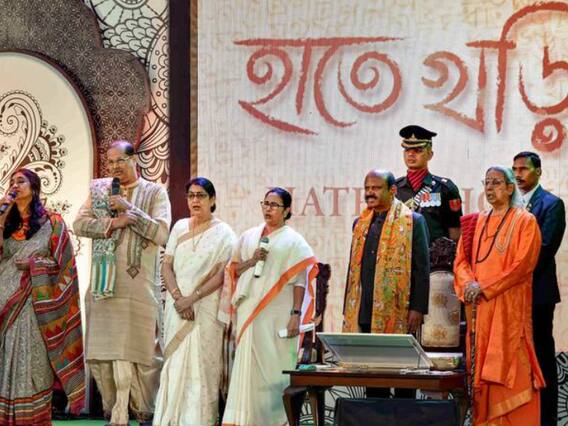 गणतंत्र दिवस के एक कार्यक्रम में सीएम ममता बनर्जी ने देशभक्ति गीत 'धोनो धन्नो पुष्पे भोरा' गाना गाया. इस अवसर पर राज्यपाल ने बनर्जी और उनके मंत्रिमंडल के कई सहकर्मियों और तीनों सशस्त्र बलों के वरिष्ठ अधिकारियों की मौजूदगी में इस अवसर पर राष्ट्र ध्वज फहराया.