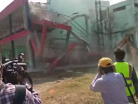 भोपाल: कांग्रेस विधायक आरिफ मसूद के तालाब किनारे बने कॉलेज में नगर निगम दस्ते ने अतिक्रमण हटाने की करवाई की है. क़रीब बारह हजार सकवेयर फीट पर बने अस्थाई निर्माण को गिराया गया. मुख्य भवन पर २००५ से हाईकोर्ट का स्टे लगा हुआ है. वहीं, समर्थकों ने मीडिया के सामने हंगामा किया.