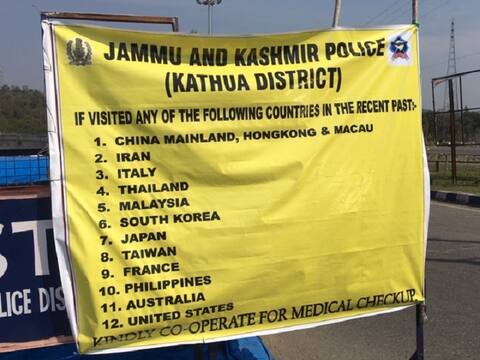 पड़ोसी राज्यों से आने वाले पर्यटकों और यात्रियों पर नजर रखने के लिए जम्मू-पंजाब बॉर्डर पर पुलिस वाहनों को रोक कर चेकिंग कर रही है. पड़ोसी राज्यों और विदेशों से आने वाले पर्यटकों से यहां पुलिस पूछताछ कर रही हैं और अगर इन पर्यटकों के लक्षण कोरोना वायरस से मिलते जुलते पाए जाते हैं तो उन्हें मेडिकल जांच के लिए ले जाया जाता है. वहीं प्रशासन ने कठुआ में लखनपुर के पास ही एक मेडिकल जांच केंद्र भी बनाया है. जहां पर डॉक्टर्स को जम्मू-कश्मीर पहुंच रहे संदिग्ध मरीजों की पहचान के लिए तैनात किया गया है.