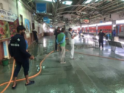 जम्मू रेलवे स्टेशन के तीनों प्लेटफॉर्म्स पर रेलवे के सफाई कर्मचारी मशीन और केमिकल लिए स्टेशन पर व्यापक सफाई अभियान चलाते दिखे. दर्जनों सफाई कर्मचारियों ने रेलवे स्टेशन के चप्पे-चप्पे को साफ किया. साथ ही जिन स्थानों पर यात्री बैठते हैं उन स्थानों को केमिकल से संक्रमण मुक्त किया जा रहा था.