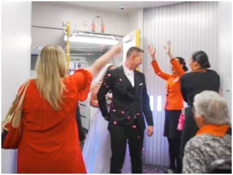 कपल शादी करने की अनुमति देने के लिए जेटस्टार एयरवेज के संपर्क में आया और कंपनी ने खुशी से हां कहा. जेटस्टार ने अपने फेसबुक अकाउंट पर कपल का एक मनमोहक वीडियो शेयर करते हुए लिखा, "जब कैथी और डेविड ने हमें बताया कि वे दोनों ऑस्ट्रेलिया और न्यूजीलैंड के बीच शादी करना चाहते हैं, हम जानते थे कि हमें उनके सपने को सच करने में मदद करनी थी.'' कपल ने तस्मान सागर पर 34,000 फीट के ऊपर जेटस्टार की उड़ान में साथ रहने की प्रतिज्ञा ली."
