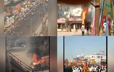 - हिंसा की आग मुंबई तक पहुंच गयी है. घाटकोपर में मुंबई में ईस्टर्न एक्सप्रेस हाईवे पर जाम लगाया है. ठाणे में लोगों भी ने प्रदर्शन किया. अहमदनगर, अकोला, धुले, परभणी, शिरडी, औरंगाबाद में बसों पर पथराव किया गया.