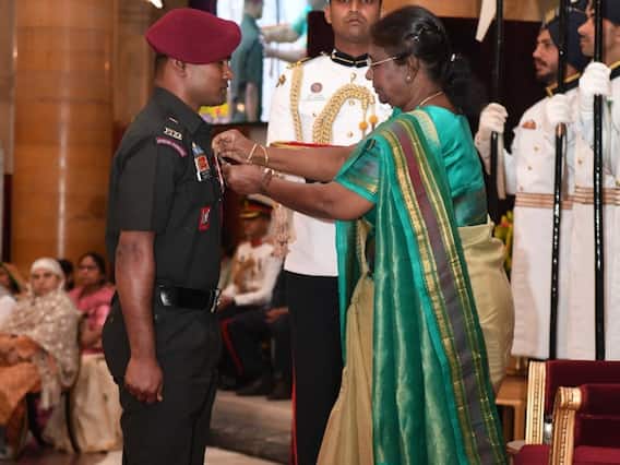 Defence Investiture Ceremony 2023: मंगलवार (9 मई) को राष्ट्रपति भवन में हुए एक समारोह में कैप्टन (अब मेजर) राकेश टीआर को शौर्य चक्र से सम्मानित किया गया. राकेश टीआर के अलावा सेना और पैरामिलिट्री फोर्स के कई अधिकारियों को सम्मानित किया गया.
