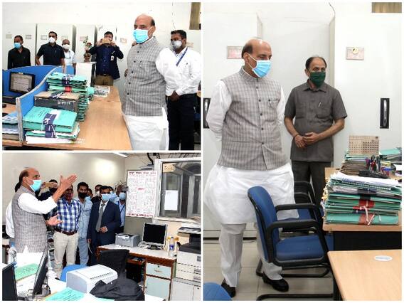 राजनाथ सिंह ने किया रक्षा मंत्रालय का औचक निरीक्षण