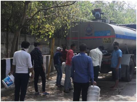 दिल्ली में पानी टैंकर के पास लगी भीड़ को भी दिया जा रहा है सोशल डिस्टेंसिंग का पाठ