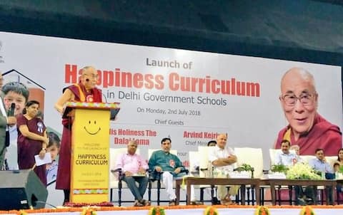 दिल्ली के त्यागराज राज स्टेडियम में हैप्पीनेस करिकुलम को लांच किया गया. इसमें बौद्ध धर्म गुरु दलाईलामा विशेष मेहमान के तौर पर उपस्थित थे. साथ ही सीएम केजरीवाल और शिक्षा मंत्री मनीष सिसोदिया भी मौजूद थे. दलाई लामा ने दिल्ली सरकार के इस कदम की तारीफ की. दलाई लामा ने भाषण की शुरुआत में कहा कि अखबार वाले आपके बारे में अलग विचार रखते हैं. दलाई लामा ने कहा कि मॉडर्न शिक्षा इनर पीस पर कोई जवाब नहीं देती. स्वास्थ्य भाव और दिमाग चाहिए.