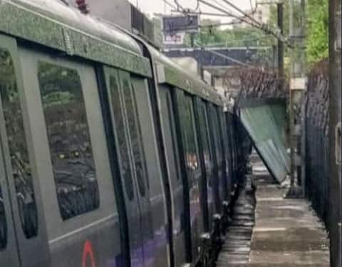 नई दिल्ली: भारी बारिश और तेज हवा के चलते जंगपुरा और लाजपत नगर मेट्रो स्टेशन के बीच रेलिंग की रेलिंग की एक शीट चलती ट्रेन पर गिर जाने से वायलेट लाइन पर ट्रेन सेवाएं प्रभावित हो गई. वायलेट लाइन कश्मीरी गेट से फरीदाबाद स्थित एस्कोर्ट्स मुजेसर को जोड़ती है. ट्रेन जंगपुरा स्टेशन से आ रही थी और यह लाजपतनगर स्टेशन की ओर जा रही थी तभी तेज बारिश और हवाओं के चलते शाम करीब चार बजे रेलिंग की रेलिंग की एक शीट इसके ऊपर गिर गई.