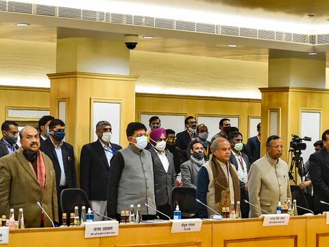 नई दिल्ली: विज्ञान भवन में किसानों और केंद्र सरकार के बीच आठवें दौर की बातचीत शुरू हो गई है. इस बैठक में केंद्रीय कृषि मंत्री नरेंद्र सिंह तोमर, केंद्रीय मंत्री पीयूष गोयल और सोम प्रकाश मौजूद हैं. बैठक शुरू होने के पहले किसान आंदोलन के दौरान जान गंवाने वाले सभी किसानों को श्रद्धांजलि दी गई और दो मिनट का मौन रखा गया . इस दौरान मंत्री मौजूद रहे. आठवें दौर की इस बैठक में 40 किसान संगठनों के नेता पहुंचे हैं.