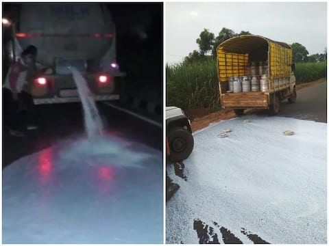 सड़कों पर बहा सैकड़ों लीटर दूधदूध उत्पादक किसानों ने महाराष्ट्र के हिंगोल में दूध के टैंकर को आग के हवाले कर दिया. प्रदर्शनकारियों ने टायर पर पेट्रोल छिड़ककर आग लगाई. कोल्हापुर के बिद्री इलाके में आंदोलकों ने दूध की गाड़ी को रोका और सैकड़ों लीटर दूध को सड़कों पर बहा दिया. अकोला में किसानों ने सड़क पर सैकड़ों लीटर दूध बहा दिया. परभणी जिले के औंढ़ा इलाके में ट्रक को जबरन रुकवाकर आंदोलन किया.