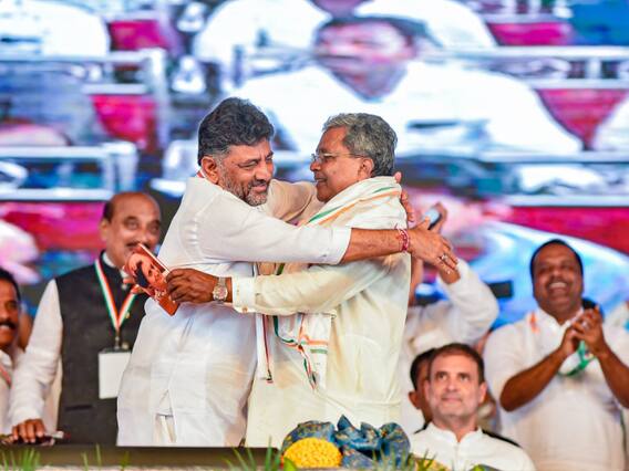ShivaKumar Hugs Siddaramaiah: कर्नाटक (Karnataka) प्रदेश कांग्रेस (Congress) में एकता और प्रेमभाव का सार्वजनिक प्रदर्शन करते हुए प्रदेश अध्यक्ष डीके शिवकुमार (DK Shivakumar) ने पार्टी के वरिष्ठ नेता सिद्धारमैया (Siddaramaiah) के 75वें जन्मदिन के मौके पर बुधवार को उनसे गले मिले और उन्हें जन्मदिन की शुभकामनाएं (Birthday Wishes) दीं. दोनों नेताओं के बीच इस प्रकार के प्रेमभाव को देखकर कांग्रेस के पूर्व अध्यक्ष राहुल गांधी (Rahul Gandhi) मुस्कुराए बिना नहीं रह सके.