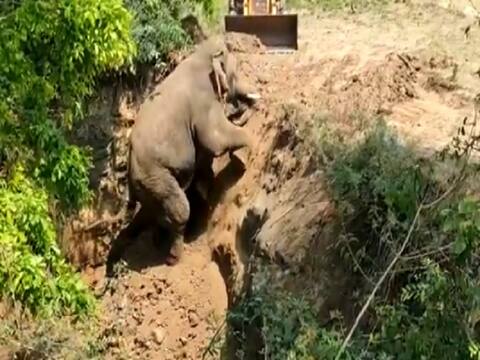 वीडियो आंध्र प्रदेश के चित्तूर जिले का है. इस वीडियो को वन विभाग के अधिकारी प्रवीण कासवान ने ट्विटर पर शेयर किया है. कासवान के मुताबिक हाथी करीब 15 फिट गहरी खाई में गिर गया था.