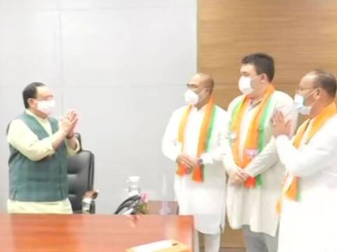नई दिल्ली: पिछले दिनों कांग्रेस से इस्तीफा देने वाले पांच विधायकों ने आज बीजेपी का दामन थाम लिया. इसके बाद विधायकों ने बीजेपी के राष्ट्रीय अध्यक्ष जेपी नड्डा से मुलाकात की. कांग्रेस छोड़कर बीजेपी में शामिल होने वाले विधायकों में मणिपुर के पूर्व मुख्यमंत्री ओकाराम इबोबी सिंह के भतीजा भी शामिल हैं.