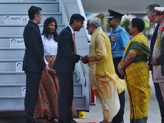 ऋषि सुनक और उनकी पत्नी के स्वागत में डांसरों के ग्रुप ने पारंपरिक भारतीय नृत्य पेश किया. पिछले साल अक्टूबर में पदभार संभालने के बाद प्रधानमंत्री के रूप में ऋषि सुनक की ये पहली भारत यात्रा है. न्यूज़ एजेंसी एएनआई के अनुसार, सूत्रों ने बताया कि प्रधानमंत्री नरेंद्र मोदी 9 सितंबर को जी-20 शिखर सम्मेलन से इतर ऋषि सुनक के साथ द्विपक्षीय बैठक करेंगे.