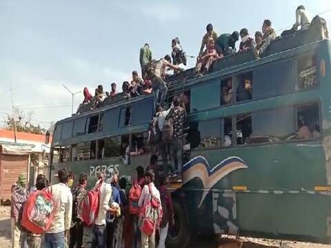 गया जंक्शन पर विभिन्न राज्यों से आए प्रवासी मजदूरों को लेकर निजी बसें खचाखच भरकर जा रही थीं. बस के लगते ही सभी प्रवासी मजदूर बस की ओर दौड़ पड़ते, जिसे जहां सीट मिली वह वहीं बैठ गया, जिनको सीट न मिली वे बसों के अंदर खड़े हो गए. तो कई लोग बसों के ऊपर बैठे गए. बसों के छतों पर लोगों को बैठे देख कई बच्चे भी छत पर जा बैठें.