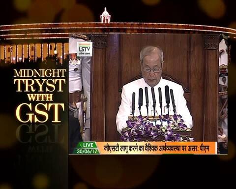 राष्ट्रपति ने शुक्रवार देर रात संसद के ऐतहासिक केन्द्रीय कक्ष में घंटा बजाकर माल और सेवा कर (जीएसटी) लागू होने की विधिवत घोषणा की. इससे पहले उन्होंने समारोह को संबोधित करते हुए कहा, "कुछ ही पलों में हम माल और सेवा कर (जीएसटी) देश में लागू करने के साक्षी बनेंगे जो एक एकीकृत कर प्रणाली है." उन्होंने कहा कि यह ऐतिहासिक क्षण उस 14 साल लंबी यात्रा का समापन है जो दिसंबर 2002 में तब शुरू हुई थी जब परोक्ष कर के बारे में केलकर कार्य बल ने मूल्य वधर्ति कर सिद्धांत के आधार पर माल और सेवा कर का सुझाव दिया था. उन्होंने कहा कि वर्ष 2006-07 के आम बजट में जीएसटी का प्रस्ताव किया गया था.