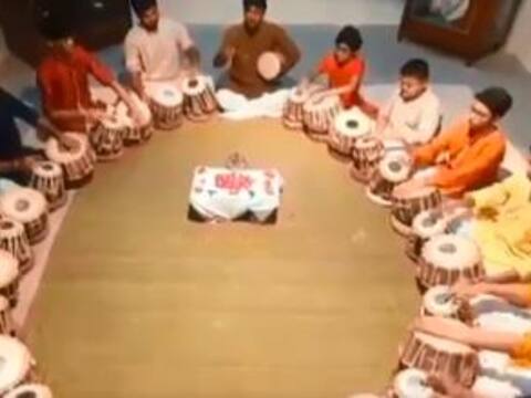 यह वीडियो गुजरात के राजकोट का है, जहां 14 शिष्य अपने तबला गुरु भार्गवदास जानी के साथ मिलकर 'शिव तांडव' पर अपनी प्रस्तुति दे रहे हैं. इन छात्रों में कृष्णा, ऋषभ, किशन, जलेश, रुद्राक्ष, हिरेन, यश, पंकज, साहिल, किशन त्रिवेदी, रविंद्र, भार्गव और ॐ शामिल हैं. वहीं, उनके गुरु भार्गवदास जानी उन्हें तबले की ताल पर 'शिव तांडव' सीखा रहे हैं.
