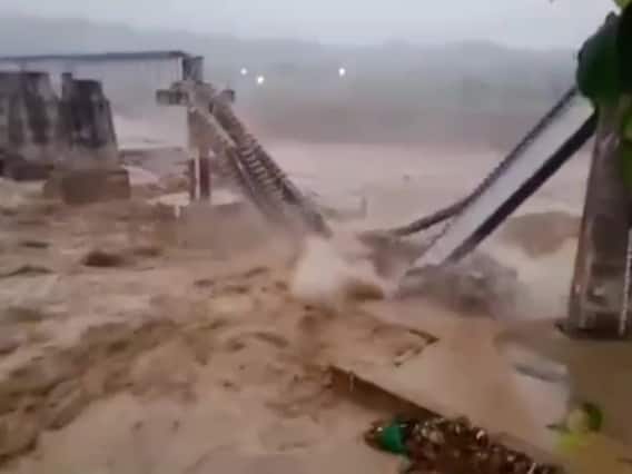 Himachal Railway Bridge Collapse: हिमाचल प्रदेश के कांगड़ा जिले में स्थित चक्की नदी पर बना रेलवे पुल बाढ़ में ढह गया. एडीएम रोहित राठौर ने इसकी जानकारी दी. बता दें कि यह पुल पंजाब और हिमाचल की सीमा पर बना है. अचानक आई बाढ़ ने पुल के खंभों को बहा दिया. राहत की बात यह है कि इस दौरान कोई रेल पुल से नहीं जा रही था वरना बड़ा नुकसान हो सकता था. जब तक ब्रिज ठीक नहीं होता तब तक कोई ट्रेन इस रास्ते से नहीं जाएगी. आज सुबह मंडी में भी अचानक आई बाढ़ के कारण घरों और दुकानों में पानी भरने से लोग फंस गए.