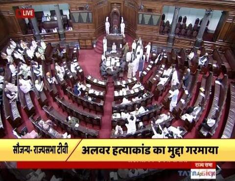 नई दिल्ली: राजस्थान के अलवर ज़िले के बहरोड़ में गो तस्करी के शक में एक शख्स की हत्या का मामला आज दूसरे दिन भी राज्यसभा में गरमाया हुआ है. संसद में इस मुद्दे पर दूसरे दिन भी हंगामा जारी है. विपक्ष अलवर की घटना पर मुख्तार अब्बास नकवी के कल दिए गए बयान पर हंगामा कर रहा है. राज्यसभा के उपसभापति ने आज सदन में बताया कि गृह मंत्री राजनाथ सिंह इस मामले पर सोमवार को बयान देंगे.