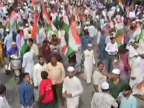 हैदराबादः नागरिकता संशोधन कानून, एनआरसी और एनपीआर के विरोध में ऑल इंडिया मजलिस ए इत्तेहादुल मुस्लिमीन (एआईएमआईएम) के अध्यक्ष असदुद्दीन ओवैसी अपने समर्थकों के साथ हैदराबाद में तिरंगा यात्रा निकाल रहे हैं. इस यात्रा में भारी संख्या में लोग मौजूद हैं और सरकार के खिलाफ नारेबाजी कर रहे हैं.