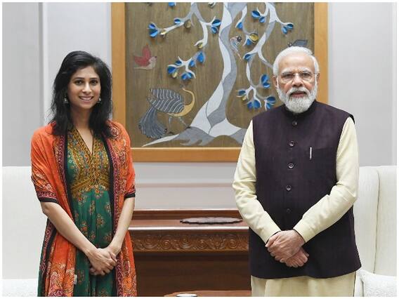 IMF Chief Gita Gopinath Called On PM Modi: अंतर्राष्ट्रीय मुद्रा कोष (IMF) की मुख्य अर्थशास्त्री (Chief Economist) गीता गोपीनाथ ने बुधवार को प्रधानमंत्री नरेंद्र मोदी से मुलाकात की. प्रधानमंत्री कार्यालय (PMO) की ओर से जारी एक ट्वीट में यह जानकारी दी गई. हालांकि दोनों में क्या बात हुई इसकी कोई जानकारी नहीं दी गई. पीएमओ ने कहा, "आईएमएफ की मुख्य अर्थशास्त्री गीता गोपीनाथ ने प्रधानमंत्री नरेंद्र मोदी से मुलाकात की."