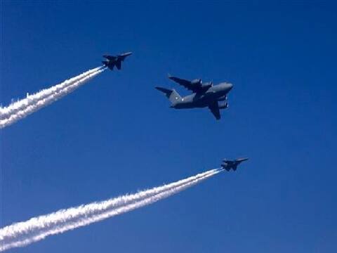 इसके बाद होगा नेत्रा फोरमेशन जिसमें एक एवैक्स (एयरबोर्न अर्ली वार्निंग कंट्रोल सिस्टम) टोही विमान होगा और उसके साथ होंगे दो सुखोई फाइटर जेट्स. इसके बाद तीन सी17 ग्लोबमास्टर हेवीलिफ्ट ट्रांसपोर्ट एयरक्राफ्ट आएंगे.
