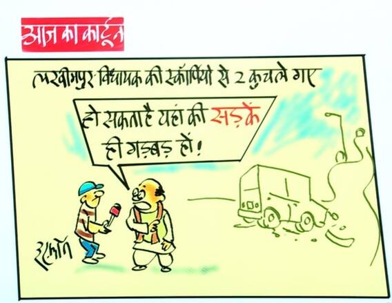 इन दोनों घटनाओं को देखते हुए वहीं आज मशहूर कार्टूनिस्ट इरफान ने अपने कार्टून में इन नेताओं की चुकटी ली है. इरफान ने कार्टून में एक नेता को दिखाया है जिससे पत्रकार सवाल कर रहे हैं. नेता से जब पत्रकार ने इस घटना का जिक्र किया तो जवाब में उन्होंने कहा कि हो सकता है कि यहां की शड़कें ही गड़बड़ हो.