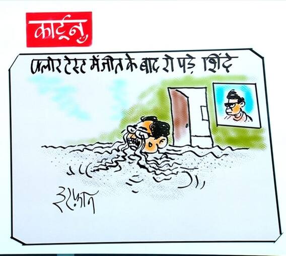 इरफान के कार्टून में आज उस चित्र को दर्शाया है जो फ्लोर टेस्ट में पास होने के बाद विधानसभा में होते दिखा था. कार्टून में एकनाथ शिंदे दिखाई पड़ रहे हैं जिनकी आंखों से आंसू बहते दिख रहे हैं. हालांकि, कार्टून में इरफान ने तंज इस तरह कसा कि एकनाथ खुद के आंसुओं में डूब गए.