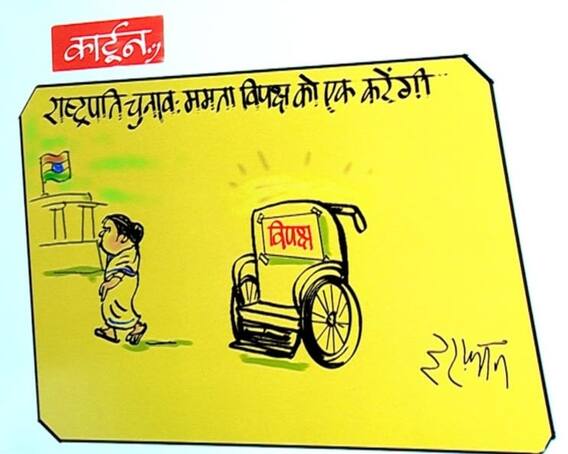 इरफान के कार्टून में आज एक व्हीलचेयर दिख रही है जिस पर विपक्ष लिखा है. वहीं, इसी व्हीलचेयर से कुछ ही दूरी पर ममता बनर्जी राष्ट्रपति भवन की ओर बढ़ते दिख रही हैं. इस कार्टून पर इरफान ने लिखा है, राषट्रपति चुनाव: ममता विपक्ष को एक करेंगी.