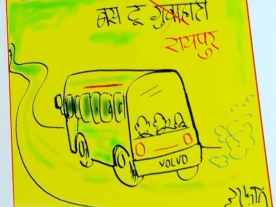इस कार्टून के जरिए इरफान ने राजनीतिक दलों की रिजॉर्ट पॉलिटिक्स पर निशाना साधा. कार्टून में देखा जा सकता है कि इरफान ने झारखंड के विधायकों को बस छत्तीसगढ़ के रिजॉर्ट में ले जाने को लेकर लिखा कि बस टू रायपुर.