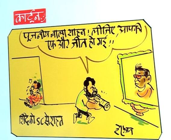 इरफान ने आज कार्टून में तीन अलग-अलग चित्र बनाए हैं. इनमें एक बाला साहेब ठाकरे, दूसरा उद्धव ठाकरे और तीसरा एकनाथ शिंदे का है. कार्टून में बाला साहेब का चित्र दीवार पर टंगे फोटो फ्रेम पर है तो वहीं उद्धव एक कोने में परेशान बैठे दिख रहे हैं. एकनाथ शिंगे बाला साहेब की दीवार पर टंगे फोटो फ्रेम की ओर बढ़ते दिख रहे हैं. इस कार्टून को बनाते हुए इरफान ने लिखा, पूजनीय बाला साहब! लीजिए, आपकी एक और जीत हो गई.