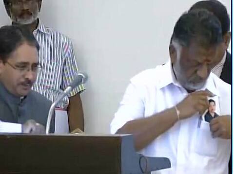 चेन्नईः तमिलनाडु की राजनीति में 1987 के बाद बड़ा बदलाव देखने को मिल रहा है. सोमवार रात 11.30 बजे अपोलो अस्पताल में तमिलनाडु सीएम जे जयललिता का निधन हो गया. इसके बाद एआईएडीएमके के बड़े नेता ओ. पन्रीरसेल्वम तमिलनाडु के नए सीएम बन गए हैं. अब से थोड़ी देर पहले पन्नीरसेल्वम ने राजभवन में मुख्यमंत्री पद की शपथ ली पन्नीरसेल्वम के साथ ही 21 अन्य विधायकों ने भी मंत्री पद की शपथ ली. शपथ ग्रहण के दौरान पन्नीरसेल्वम के हाथ में जे जयललिता की तस्वीर थी.