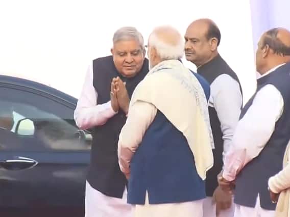 इस दौरान धनखड़ और पीएम मोदी दोनों ने एक दूसरे का अभिवादन किया. इसी का वीडियो सामने आने के बाद सोशल मीडिया पर लोगों ने ट्रोल करना शुरू कर दिया. कांग्रेस की प्रवक्ता सुप्रिया श्रीनेत ने वीडियो शेयर करते हुए लिखा, ''भारत के उपराष्ट्रपति''