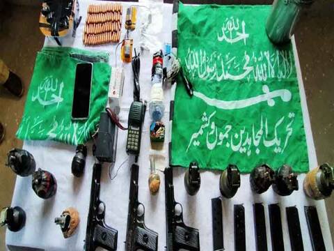 आतंकियों के जिस ठिकाने को ध्वस्त किया गया है वहां से पुलिस को 3 चीनी पिस्तौल, 6 पिस्टल मैगज़ीन, 70 पिस्टल राउंड, 11 हैंड ग्रेनेड, एक वायरलेस सेट, एक आईडी, दो बैटरी, दो झंडे, एक मोबाइल फोन, एक चार्जर, एक पेनड्राइव और आईडी बनाने का कुछ सामान मिला है. इस मामले में पुलिस ने अभी तक 2 लोगों को हिरासत में लिया है.