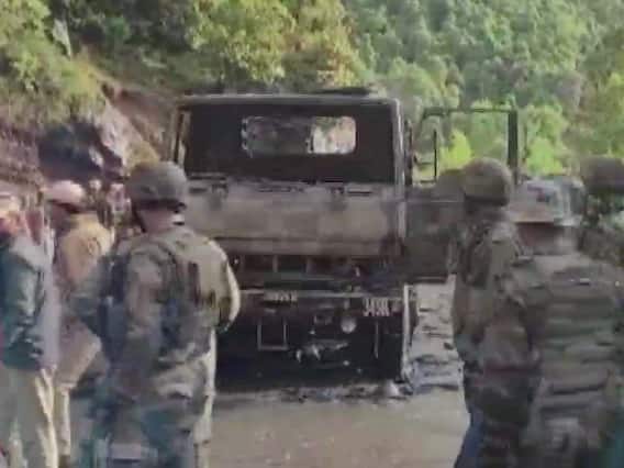 Poonch Terrorist Attack: जम्मू-कश्मीर के पुंछ में गुरुवार (20 अप्रैल) को आतंकी हमले के बाद सेना की गाड़ी में आग लगने से 5 जवान शहीद हो गए और एक अन्य गंभीर रूप से घायल हो गया. सेना ने एक बयान में कहा है कि सभी पांचों जवान राष्ट्रीय राइफल्स यूनिट के थे और इलाके में आतंकवाद विरोधी अभियानों के लिए तैनात किए गए थे. आतंकियों ने घात लगाकर इस घटना को अंजाम दिया.