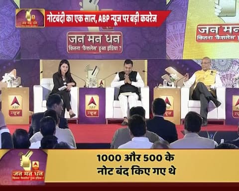 नोटबंदी से जुड़े ऐसे ही कई सवालों के जवाब जानने के लिए ABP न्यूज़ विशेष पेशकश लेकर आया है जन मन धन. जनता के सवालों के जवाब देने के लिए सरकार की ओर से रेल मंत्री पीयूष गोयल, कानून मंत्री रविशंकर प्रसाद, नागरिक उड्डयन मंत्री जयंत सिन्हा, बीजेपी प्रवक्ता संबित पात्रा होंगे. वहीं विपक्ष की ओर से सरकार के सामने आवाज उठाने के लिए कांग्रेस के दिग्गज नेता और महाराष्ट्र पूर्व सीएम पृथ्वीराज च्वहाण और वरिष्ठ वकील अभिषेक मनु सिंघवी मौजूद रहेंगे.