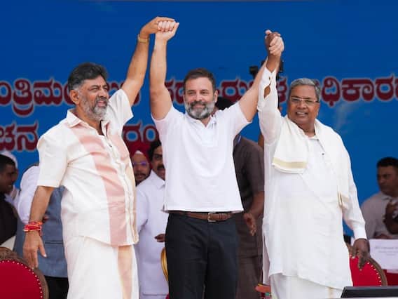 Siddaramaiah Oath Taking: कर्नाटक में कांग्रेस की शानदार जीत के बाद शनिवार (20 मई) को बेंगलुरु के कांतीरवा स्टेडियम में सिद्धारमैया ने मुख्यमंत्री और डीके शिवकुमार ने डिप्टी सीएम पद की शपथ ली. शपथ ग्रहण में कई कांग्रेस शासित राज्यों के मुख्यमंत्री मौजूद रहे.