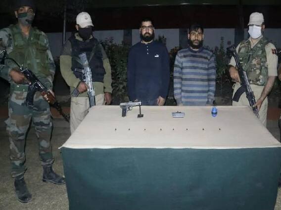 Terrorists Arrested In Kashmir: उत्तरी कश्मीर (Kashmir) में पुलिस को एक बार फिर बड़ी सफलता हाथ लगी है. यहां सोपोर पुलिस (Sopore Police) ने सुरक्षा बलों के साथ मिलकर दो लश्कर-ए-तैयबा के आतंकवादियों को गिरफ्तार कर लिया है (Two Lashkar-e-Taiba Terrorists Arrested). पुलिस को बटिंगू गांव में आतंकवादियों के होने की खबर मिली थी. इस सूचना के आधार पर इस क्षेत्र में सर्च ऑपरेशन चलाया गया था.