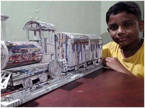 उसने ट्रेन का मॉडल बनाने के लिए किसी दुर्लभ चीजों का इस्तेमाल नहीं किया बल्कि रद्दी की टोकरी में फेंकी जानेवाले सामान को काम में लाया. अखबार के 33 और 10A4 साइज की शीट से ट्रेन का मॉडल तैयार कर वाहवाही बटोरी है. उसने ये अनूठा कारनामा लॉकडाउन में रहने के दौरान 3 दिनों के भीतर अंजाम दे डाला. मास्टर अवैध कृष्णा अभी सातवीं का छात्र है. रेलवे ने कलाकार की सराहना में उसके वीडियो को पोस्ट किया है. जिसके बाद सोशल मीडिया यूजर बधाई देने के साथ कला की जमकर प्रशंसा कर रहे हैं.