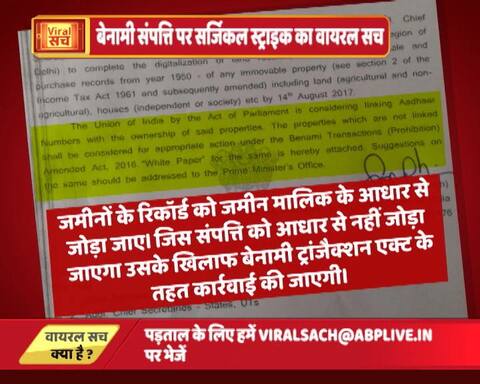 क्या है वायरल हो रही चिट्ठी में ? सोशल मीडिया पर वायरल चिट्ठी के जरिए दावा था कि सरकार 1950 के बाद से अब तक किसी भी जमीन के रिकॉर्ड को उस जमीन के मालिक के आधार से जोड़ने की तैयारी कर रही है. जो लिंक नहीं करवाएंगे उनके खिलाफ कार्रवाई होगी. इस चिट्ठी को बेनामी संपत्ति के खिलाफ औजार के तौर पर पेश किया जा रहा है.