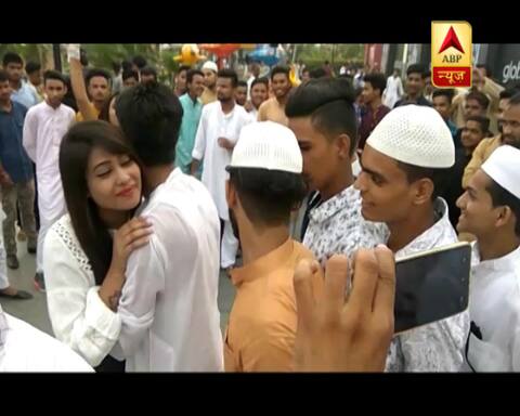 नई दिल्ली: 16 जून को देश भर में ईद का त्योहार बहुत धूमधाम से मनाया, लोगों ने एक दूसरे को ईद की मुबारकबाद दी. इस ईद की मुबारक बाद से जुड़ा एक वीडियो सोशल मीडिया पर पहुंचा. इस वीडियो ने सोशल मीडिया पर खलबली मचा दी है. 1 मिनट 26 सेकेंड के इस वीडियो में सफेद और काले रंग के कपड़ों में एक लड़की मौजूद है, ये लड़की एक-एक कर लाइन से आगे आ रहे लड़को से गले मिल रही है. डेढ़ मिनट के इस वीडियो में कैमरा जब पीछे की तरफ घूमता है तो पता चलता है कि एक लड़की से ईद मिलने के लिए लड़कों की ये लंबी कतार किसी वेव सिनेमा हॉल के बाहर लगी थी.