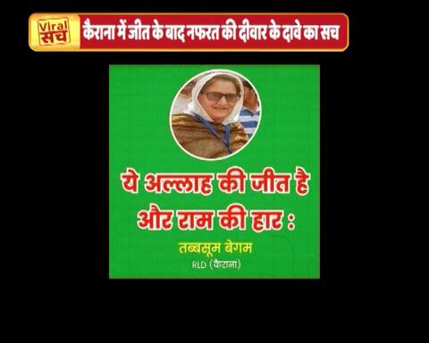 क्या लिखा है वायरल फोटो में? वायरल फोटो में सबसे ऊपर कैराना से चुनाव जीतने वाली आरएलडी यानि राष्ट्रीय लोक दल की तबस्सुम हसन दिख रही हैं. फोटो के नीचे एक मैसेज लिखा है, 'ये अल्लाह की जीत है और राम की हार, तबस्सुम बेगम, आरएलडी, कैराना'