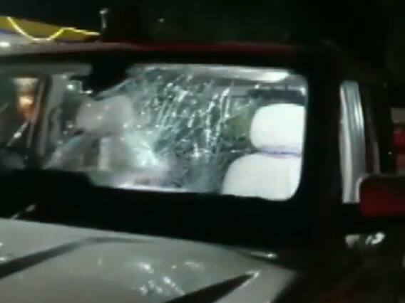 'मंत्री की गाड़ी का शीशा टूटा'