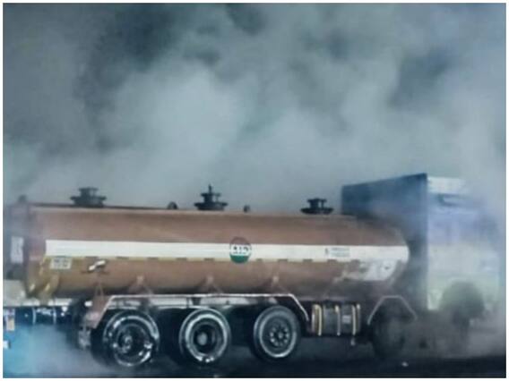 न्यूज एजेंसी द्वारा साझा की गई मौके की तस्वीर में टैंकर के पास गुब्बार उठते देखा जा सकता है.