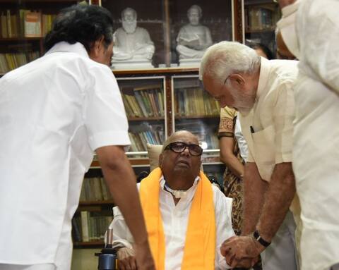 07.09 PM: पीएम मोदी ने कहा, ''दुःख की इस घंड़ी में मेरे विचार परिवार और करुणानिधि जी के अनगिनत समर्थकों के साथ हैं. भारत और विशेष रूप से तमिलनाडु उन्हें बहुत याद करेंगे. उनकी आत्मा को शांति मिले.''